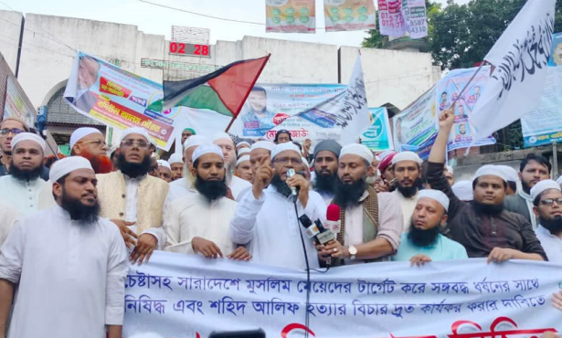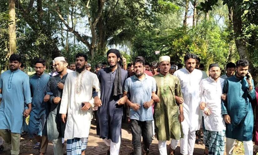 শুক্রবার (২৪ অক্টোবর) জুমার নামাজ শেষে বিশ্ববিদ্যালয়ের কেন্দ্রীয় মসজিদের সামনে থেকে শুরু হয়ে বিশ্ববিদ্যালয়ের নিউমার্কেট ঘুরে গোলচত্বরে এসে শেষ হয়। এ সময় তারা ‘নারায়ে তাকবরী, আল্লাহু আকবার’, একটা একটা ইসকন ধর, ধইরা ধইরা জেলে ভর‘, ‘ইস্কনের আস্তানা,এই ক্যাম্পাসে হবে না’সহ নানা স্লোগান দেন।