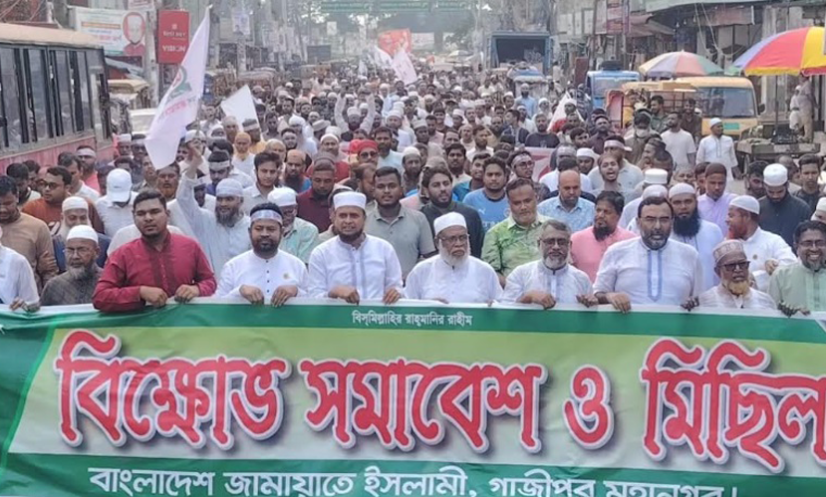 গাজীপুর : জুলাই জাতীয় সনদ বাস্তবায়ন আদেশ জারি, আগামী নভেম্বর মাসের মধ্যেই গণভোট আয়োজন এবং ৫ দফা গণদাবি আদায়ের দাবিতে গাজীপুরে বিক্ষোভ সমাবেশ ও মিছিল করেছে বাংলাদেশ জামায়াতে ইসলামী।