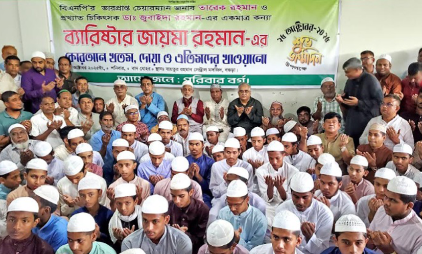 শনিবার (২৫অক্টোবর) বাদ যোহর নগরীর বায়তুর রহমান সেন্ট্রাল মসজিদে পরিবারবর্গের আয়োজনে কোরআন খতম, দোয়া ও এমিতদের খাওয়ানো হয়। এসময় উপস্থিত ছিলেন বিএনপির চেয়ারপারসনের উদেষ্টাও সাবেক এমপি মো. হেলালুজ্জামান তালুকদার লালু, বগুড়া জেলা বিএনপির সভাপতি রেজাউল করিম বাদশা, বিএনপির জাতীয় নির্বাহী কমিটির সদস্য ভিপি সাইফুল ইসলাম, আলী আজগর তালুকদার হেনা, জয়নাল আবেদীন চান, জেলা বিএনপির সহ-সভাপতি এমআর ইসলাম স্বাধীন, ডা. শাহ মো. শাজাহান আলী, মাফতুন আহমেদ খান রুবেল, নওগাঁ বিশ্ববিদ্যালয়ের ভাইস চ্যান্সেলর প্রফেসর ড. মো. হাসানাত আলী, সাংগঠনিক সম্পাদক শহিদ উন নবী সালাম, কেএম খায়রুল বাশার, জিয়া পরিবারের পক্ষে ছিলেন সৈয়দ আমিনুল হক দেওয়ান সজল, জেলা যুবদলের সাবেক আহবায়ক খাদেমুল ইসলাম খাদেম, জেলা যুবদলের সাধারণ সম্পাদক আবু হাসান প্রমুখ।