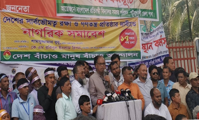 রবিবার (২৫ অক্টোবর) দুপুরে জাতীয় প্রেসক্লাবের সামনে ‘দেশ বাঁচাও মানুষ বাঁচাও আন্দোলন’-এর উদ্যোগে দেশের সর্বভৌমত্ব রক্ষা ও গণতন্ত্র প্রতিষ্ঠার দাবিতে এক নাগরিক সমাবেশে তিনি এসব কথা বলেন।