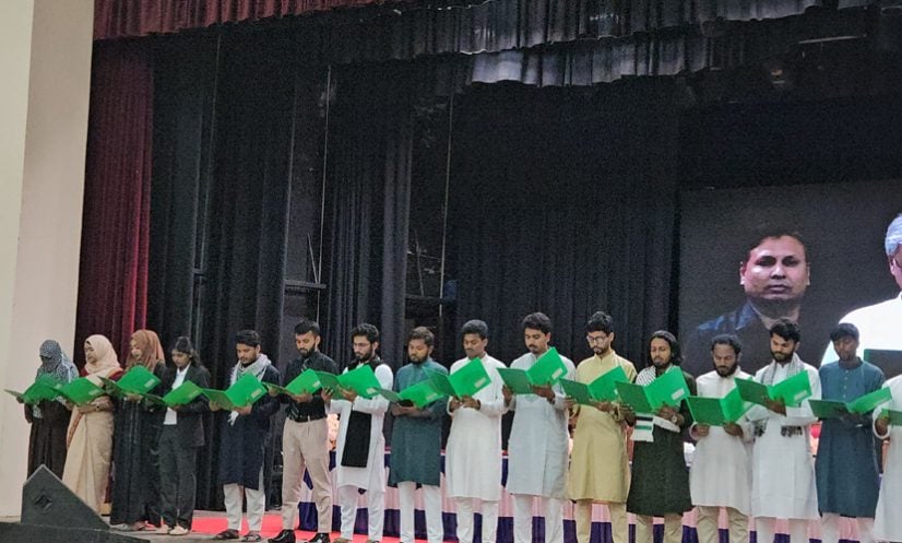 রাবি: রাজশাহী বিশ্ববিদ্যালয় কেন্দ্রীয় ছাত্র সংসদ (রাকসু), হল সংসদ ও সিনেট-এ ছাত্র প্রতিনিধি নির্বাচনের নবনির্বাচিত প্রতিনিধিরা শপথ নিয়েছেন। রোববার (২৬ অক্টোবর) বিকেল সাড়ে ৪ টায় বিশ্ববিদ্যালয়ের কাজী নজরুল ইসলাম মিলনায়তনে এ শপথ অনুষ্ঠানের আয়োজন করা হয়।