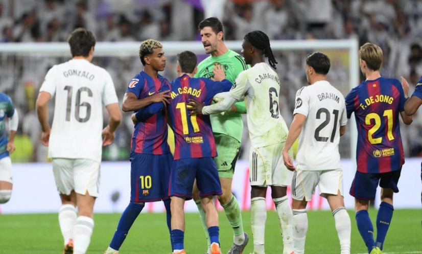 রিয়াল মাদ্রিদ ও বার্সেলোনা মুখোমুখি হবে, আর সেই ম্যাচে উত্তাপ ছড়াবে না, তা কি হয়? ঐতিহ্যবাহী এই লড়াইয়ে উত্তাপের পারদ তুঙ্গে উঠেছিল গত রাতেও। সান্তিয়াগো বার্নাব্যুতে বার্সাকে ২-১ গোলে হারিয়ে মৌসুমের প্রথম ক্লাসিকো জিতেছে রিয়াল। পুরো ম্যাচে নিস্প্রভ থাকা বার্সা তারকা লামিন ইয়ামাল কী কারণে ম্যাচ শেষে প্রতিপক্ষের সঙ্গে জড়িয়েছে তর্কে?