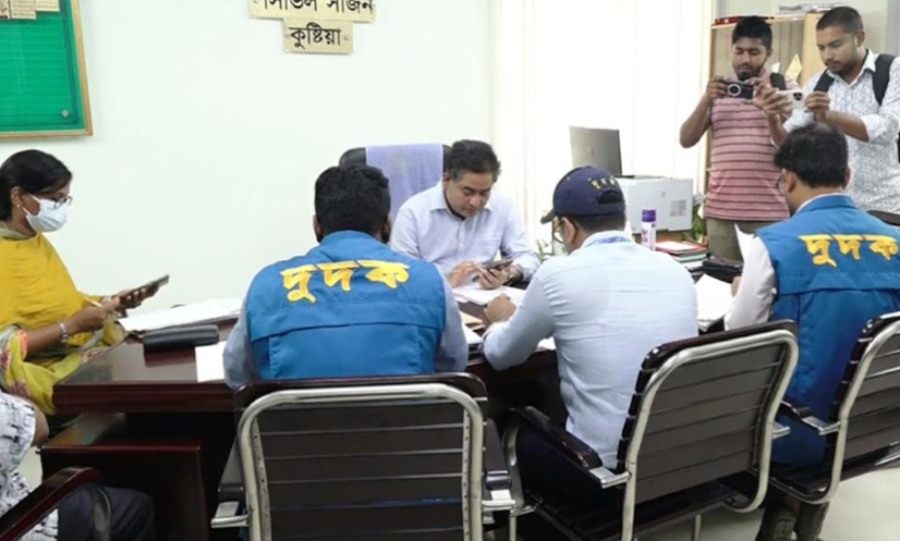 এ সময় উভয় টিমের সদস্যরা সিভিল সার্জন ডা. শেখ মো. কামাল হোসেন এবং কুষ্টিয়া ২৫০ শয্যা জেনারেল হাসপাতালের আরএমও হোসেন ইমামসহ সংশ্লিষ্টদের সঙ্গে কথা বলেন। পরে দুদক টিমের সদস্যরা নিয়োগ পরীক্ষার সঙ্গে সংশ্লিষ্ট সিভিল সার্জন কার্যালয়ের কর্মকর্তা-কর্মচারীদের মোবাইল ফোন জব্দ করেন।