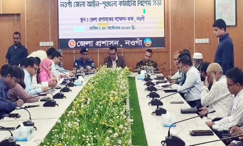 নওগাঁ: নওগাঁয় জেলা আইনশৃঙ্খলা কমিটির বিশেষ সভা অনুষ্ঠিত হয়েছে। মঙ্গলবার (২৮ অক্টোবর) জেলা প্রশাসনের আয়োজনে জেলা প্রশাসকের সভা কক্ষে এই সভা অনুষ্ঠিত হয়। সভায় চুরি-ডাকাতি, সড়ক দুর্ঘটনা, মাদকের বিস্তার, অবৈধ ইট ভাটা ও মাটি কেটে পুকুর খনন, সোশ্যাল মিডিয়ায় গুজব (টাইফয়েড টিকাদান কার্যক্রম), কিশোর গ্যাং, ইভটিজিং, সামাজিক নিরাপত্তা, ধর্মীয় উস্কানি, মেলা, ইসলামী মাহফিল, রাজনৈতিক সভাসহ জেলার সার্বিক আইনশৃঙ্খলা পরিস্থিতির বিভিন্ন বিষয়ে আলোচনা অনুষ্ঠিত হয়।