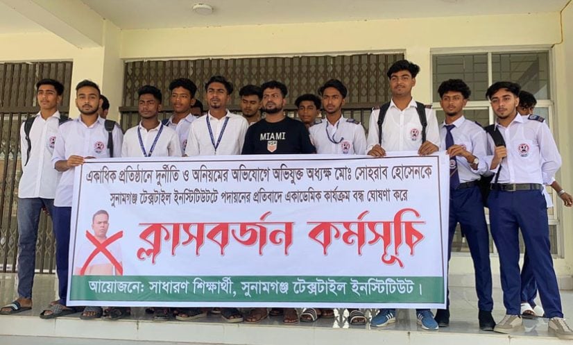 সুনামগঞ্জ: একাধিক প্রতিষ্ঠানে দুর্নীতি ও অনিয়মের অভিযোগে অভিযুক্ত অধ্যক্ষ মো. সোহরাব হোসেনকে সুনামগঞ্জ টেক্সটাইল ইনস্টিটিউটে পদায়নের প্রতিবাদে ক্লাস বর্জন করে বিক্ষোভ মিছিল করেছেন শিক্ষার্থীরা।