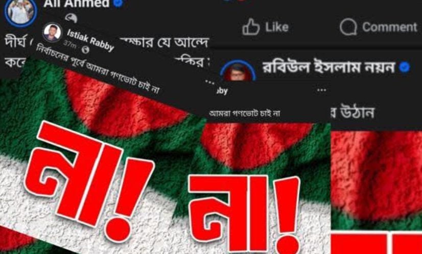 অন্যদিকে, জাতীয়তাবাদী বেসরকারি বিশ্ববিদ্যালয় ছাত্রদল কেন্দ্রীয় সংসদের যুগ্ম সাধারণ সম্পাদক ইসতিয়াক রাব্বি নিজের ফেসবুক ওয়ালে একই আদলের ছবি যুক্ত করে ‘নির্বাচনের পূর্বে আমরা গণভোট চাই না’ লিখে রাত সাড়ে ১২টার দিকে দুটি পোস্ট দিয়েছেন।