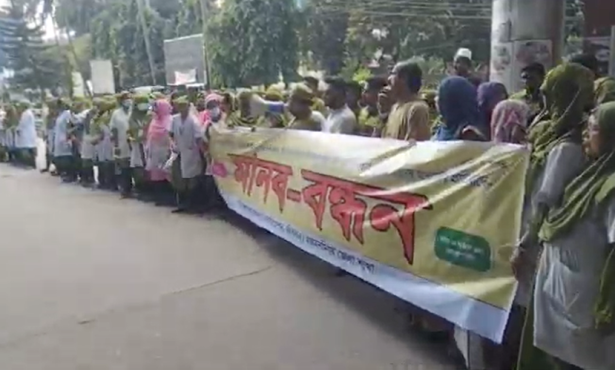 মানববন্ধনে বক্তব্য দেন শিক্ষার্থী জাকির হোসেন, শিহাব উদ-দৌলা, ইশা, তনু প্রমুখ।