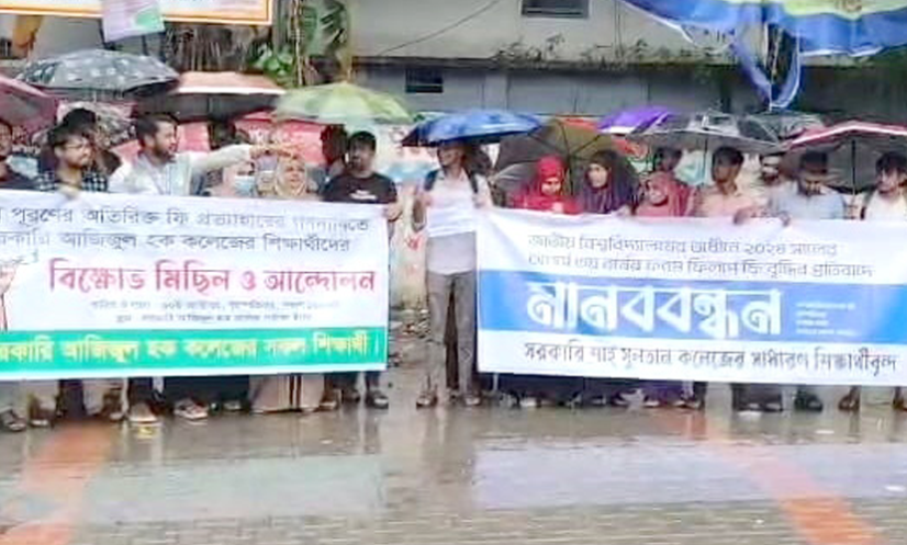 বগুড়া: জাতীয় বিশ্ববিদ্যালয়ের অধীনে অনার্স তৃতীয় বর্ষের ফরম পূরণে ফি বৃদ্ধির প্রতিবাদে বগুড়ায় মানববন্ধন ও সমাবেশ করেছে শিক্ষার্থীরা।