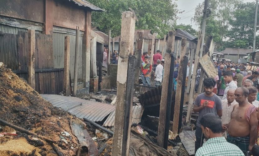 অধির চন্দ্র সাহার ছেলে প্রাণ চন্দ্র সাহা বলেন, ‘রাতে বাবার দোকান বন্ধ করে বাসায় যাই। ভোরে মানুষের হৈচৈ শুনে বাজারে এসে দেখি দোকানে আগুন জ্বলছে। আগুনে আমাদের ১৭ লাখ টাকার মালামাল পুড়ে গেছে।’
