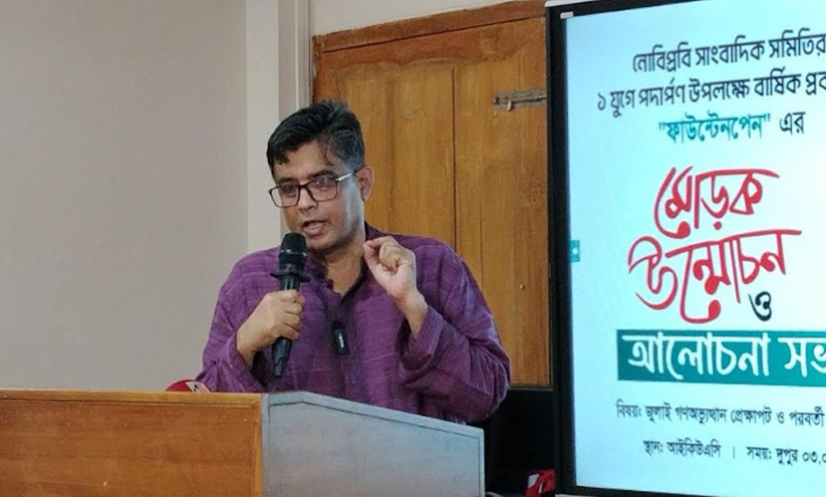 তিনি বলেন, ‘সত্য প্রকাশে সাহসী হতে হবে, মিথ্যার মুখোশ উন্মোচন করতে হবে। নোবিপ্রবি সাংবাদিক সমিতির এক যুগ পূর্তিতে আমি শুভেচ্ছা জানাই। জুলাই–আগস্ট আন্দোলনের সাহসী শিক্ষার্থীদের গল্পগুলো লিখে রাখুন—এগুলোই ভবিষ্যৎ প্রজন্মের অনুপ্রেরণা হবে।‘
