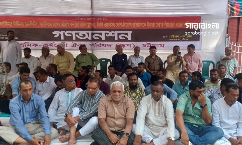 শনিবার (১ নভেম্বর) সকাল ৯টা থেকে বিকেল ৪টা পর্যন্ত নগরীর জামালখানে চট্টগ্রাম প্রেসক্লাব চত্বরে এ অনশন কর্মসূচিতে বিভিন্ন সংগঠনের শ্রমিক-কর্মচারীরা অংশ নেন।