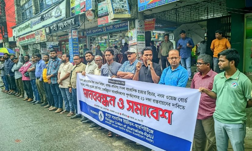 আরপিইউজে সভাপতি সালেকুজ্জামান সালেকের সভাপতিত্বে ও সাধারণ সম্পাদক সরকার মাজহারুল মান্নানের সঞ্চালনায় সমাবেশে বক্তব্য দেন রংপুর সম্মিলিত সাংবাদিক সমাজের সদস্য সচিব লিয়াকত আলী বাদলসহ বিভিন্ন সাংবাদিক সংগঠনের নেতারা।