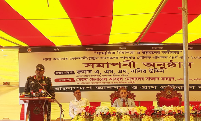 আনসার ও গ্রাম প্রতিরক্ষা বাহিনীর সদস্যদের মৌলিক প্রশিক্ষণের (চতুর্থ ধাপ) সমাপনী অনুষ্ঠানে প্রধান অতিথি হিসেবে উপস্থিত ছিলেন প্রধান নির্বাচন কমিশনার (সিইসি) এ এম এম নাসির উদ্দিন।