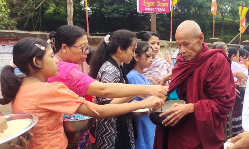 অনুষ্ঠানে উপস্থিত থেকে বৌদ্ধ ভিক্ষুদের পিন্ডদান করেন পার্বত্য চট্টগ্রাম আঞ্চলিক পরিষদের সদস্য কেএস মং।