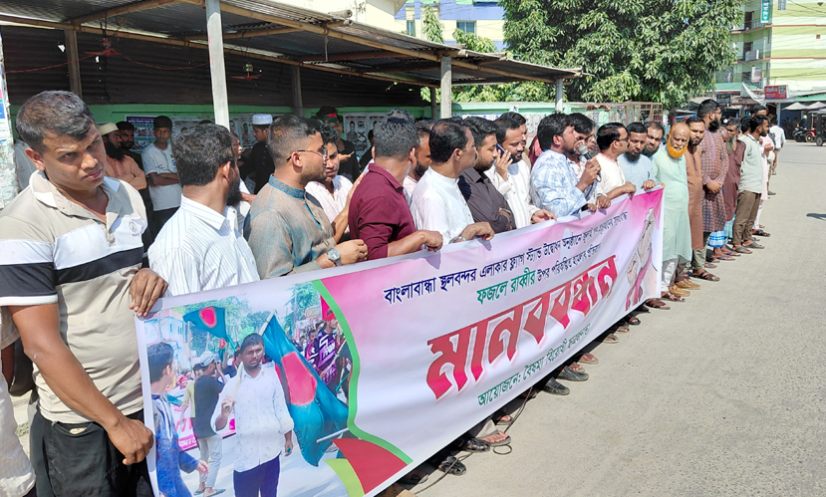 পঞ্চগড়: পঞ্চগড়ের বাংলাবান্ধা স্থলবন্দর এলাকায় পতাকা স্ট্যান্ড উদ্বোধন অনুষ্ঠানে জুলাই গণঅভ্যুত্থানের পঞ্চগড় জেলার সমন্বয়ক ফজলে রাব্বীর ওপর হামলার প্রতিবাদে মানববন্ধন অনুষ্ঠিত হয়েছে।