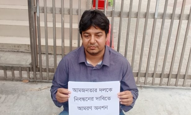 ঢাকা: দল নিবন্ধনের দাবিতে ইসির সামনে আমরণ অনশন করছেন আমজনতার তারেক রহমান। এ বিষয়ে নির্বাচন কমিশন বলছে, ইসির শর্ত অনুযায়ী দু’টি জেলা ও ৬৭টি উপজেলায় কার্যক্রম ও সক্রিয়তা না পাওয়ায় আমজনতা দলকে নিবন্ধন দেওয়া যায়নি। তবে সব জায়গার কার্যক্রম সক্রিয় আছে জানিয়ে তারেক অভিযোগ করেছেন, ইসির তদন্ত কর্মকর্তারা সঠিক প্রতিবেদন দেননি।