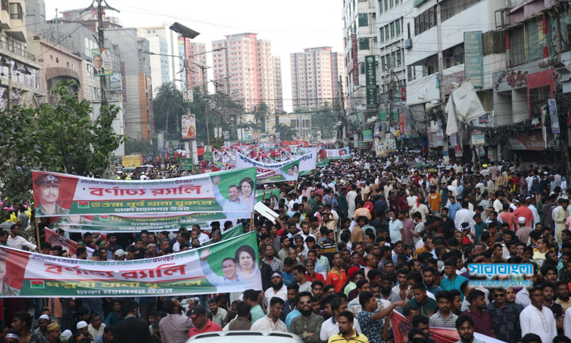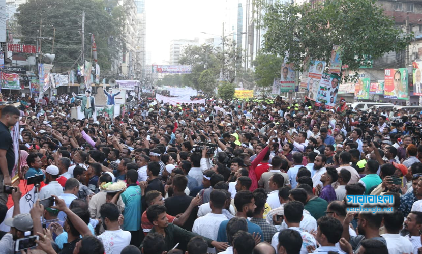 বিভিন্ন ব্যানার, প্ল্যাকার্ড, ট্রাক ও সাজানো গাড়ি নিয়ে অংশ নেওয়া নেতা-কর্মীদের উপস্থিতিতে পুরো নয়াপল্টন এলাকা উৎসবমুখর হয়ে ওঠে।