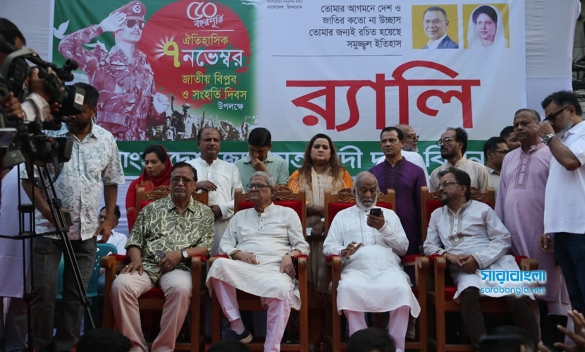 ঐতিহাসিক ৭ নভেম্বর বিপ্লব ও সংহতি দিবস উপলক্ষ্যে বিএনপি আয়োজিত সমাবেশে দলটির নেতারা। ছবি: সারাবাংলা