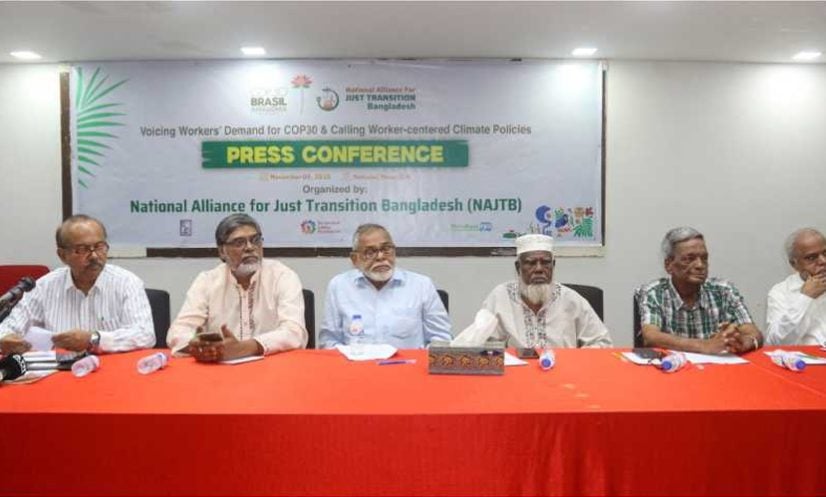 রোববার (৯ নভেম্বর) জাতীয় প্রেসক্লাবের জহুর হোসেন চৌধুরী হলে ‘কপ-৩০-এর জন্য বাংলাদেশি শ্রমিক ও ট্রেড ইউনিয়নগুলোর দাবিনামা পেশ’ বিষয়ক সংবাদ সম্মেলন বক্তারা এসব কথা বলেন। ন্যাশনাল অ্যালায়েন্স ফর জাস্ট ট্রানজিশন বাংলাদেশ (এনএজেটিবি) আয়োজিত বাংলাদেশ লেবার ফাউন্ডেশন (বিএলএফ) এবং বাংলাদেশ ইনস্টিটিউট অব লেবার স্টাডিজ (বিলস) ও মন্ডিয়াল এফএনভির সহযোগিতায় সংবাদ সম্মেলনটি অনুষ্ঠিত হয়।