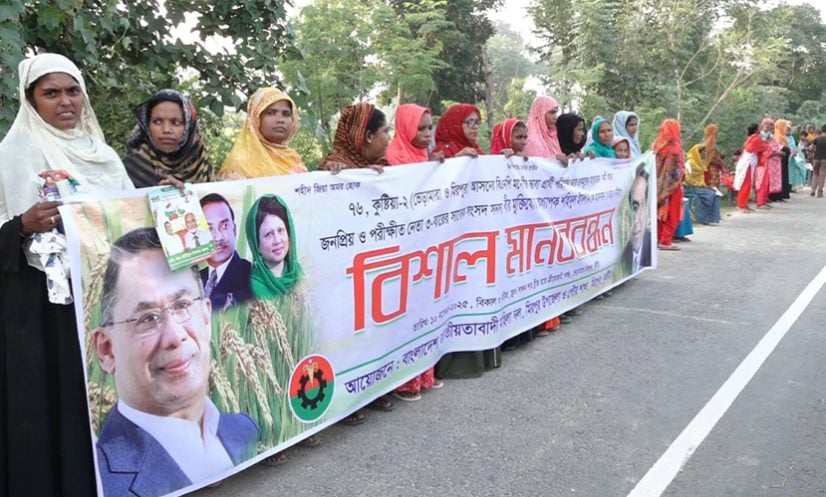 কুষ্টিয়া: কুষ্টিয়া-২ (মিরপুর-ভেড়ামারা) আসনে তিনবারের সাবেক সংসদ সদস্য অধ্যাপক শহিদুল ইসলামকে বিএনপির মনোনয়ন দেওয়ার দাবিতে প্রায় ২০ কিলোমিটার দীর্ঘ মানববন্ধন করেছে স্থানীয় বিএনপি।