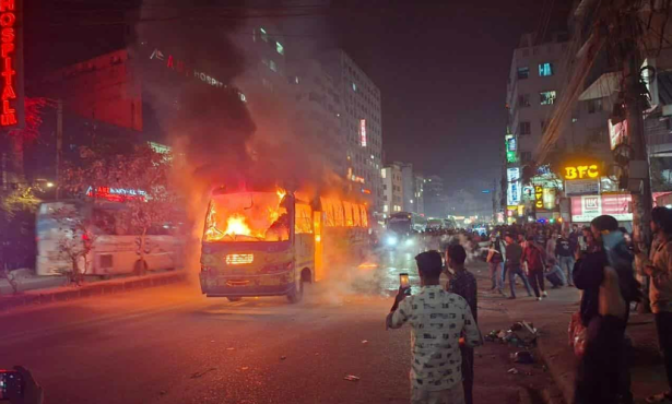 মঙ্গলবার (১১ নভেম্বর) রাত সোয়া ৩টার দিকে ফুলবাড়িয়া পৌরসভার ভালুকজান বাজারের পেট্রোল পাম্পের সামনে দাঁড়িয়ে থাকা বাসটিতে আগুন দেয় দুর্বৃত্তরা।