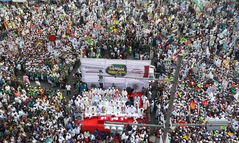 তিনি আরও বলেন, ‘আমার ভাই আল্লামা মামুনুল হক সাহেব বলেছেন, লড়াই করে ফ্যাসিবাদ বিদায় করেছি, লড়াই করে দাবি আদায় করব। আমি স্পষ্ট ভাষায় বলতে চাই, কোনো দলের নয়, জনতার বিজয় হবে ইনশাল্লাহ। জনতা কী চায় কান পেতে শোনার চেষ্টা করুন। যদি এই ভাষা বুঝতে ব্যর্থ হন, তাহলে যারা শুনতে ব্যর্থ হবেন, তাদের নিজের পরিণতির জন্য তৈরি থাকতে হবে। যতক্ষণ পর্যন্ত জনগণের এই দাবি আদায় না হবে, আমাদের আন্দোলন দুর্বার গতিতে চলতে থাকবে।’