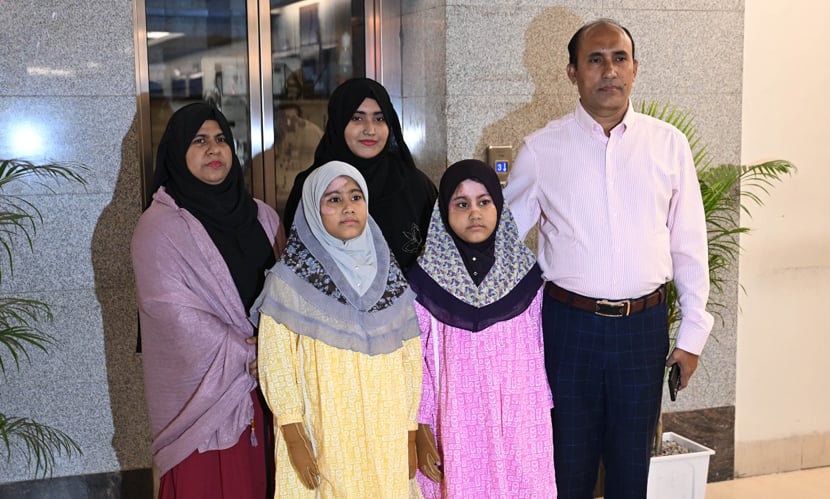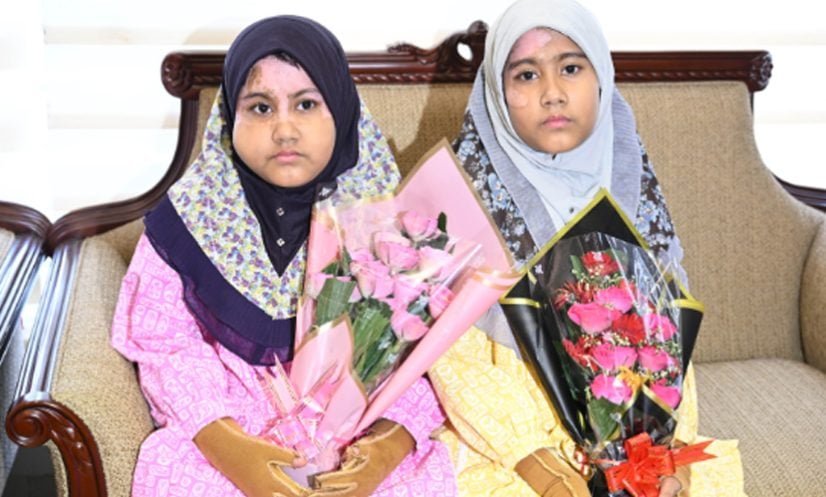 ঢাকা: জাতীয় বার্ন অ্যান্ড প্লাস্টিক সার্জারি ইনস্টিটিউটে প্রায় সাড়ে তিন মাস চিকিৎসাধীন থাকার পর বাড়ি ফিরল মাইলস্টোন স্কুল অ্যান্ড কলেজে প্রশিক্ষণ বিমান বিধ্বস্তের ঘটনায় আহত দশ বছর বয়সী যমজ শিশু সারিনাহ জাহান সায়রা ও সাইবাহ জাহান সায়মা।