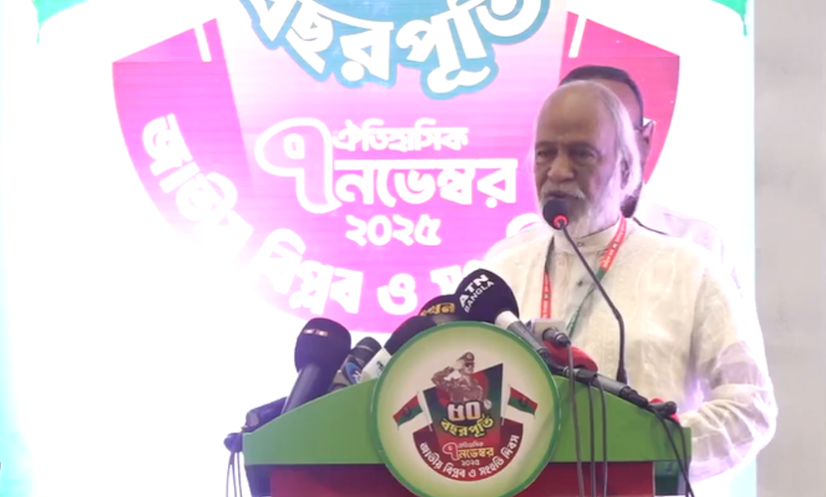 বুধবার (১২ নভেম্বর) বিকেলে রাজধানীর বাংলাদেশ-চীন মৈত্রী সম্মেলন কেন্দ্রে ঐতিহাসিক ৭ নভেম্বর জাতীয় বিপ্লব ও সংহতি দিবস উপলক্ষ্যে আয়োজিত আলোচনা সভায় তিনি এ কথা বলেন।