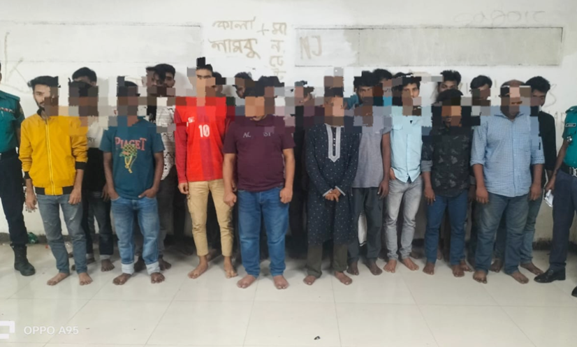 গ্রেফতার আসামিরা হলেন- মুজাহিদ (১৯), রিপন (৩৪), সাদ্দাম (১৯), সুমন (২৯), শরিফ (৩০), তৌসিফ হোসেন (২৪), আব্দুল আল মামুন (২২), রবিউল (২৪), আরাফাত হোসেন তুহিন (২৪), ইলিয়াস হোসেন মিরাজ (৩১), ডালিম ভুঁইয়া (৫০), ফুয়াদ (২৪), বন্ধন (২০), সামসাদ (২৫), ইকরাম তোতা (৫৫), ইমরান (৩৮), আজাদ (২৮), ফয়সাল (২৮), আরিফ হোসেন (৪৫), আক্তার হোসেন কাল্লু (৪৫), শাকিল শিকদার (২৫) ও মমিন (২৪)।