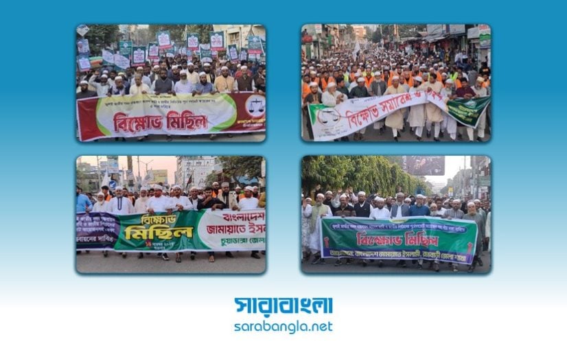 ঢাকা: জুলাই জাতীয় সনদ বাস্তবায়ন আদেশ জারি, জাতীয় নির্বাচনের পূর্বে গণভোট ও পিআরসহ পাঁচ দফা দাবিতে শুক্রবার (১৪ নভেম্বর) দেশের বিভিন্ন স্থানে বিক্ষোভ করেছে জামায়াতে ইসলামীসহ ৮টি ইসলামী দল। সারাবাংলার ডিস্ট্রিক্ট করেসপন্ডেন্টদের পাঠানো প্রতিবেদন—