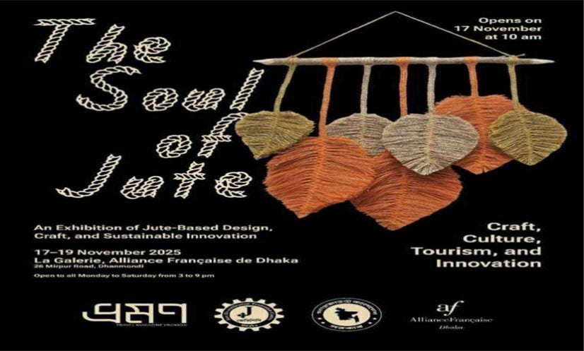 ঢাকা: পাটকেন্দ্রিক শিল্প, সংস্কৃতি, পর্যটন ও উদ্ভাবনের সমন্বয়ে ‘দ্য সোল অব জুট: ক্রাফট, কালচার, ট্যুরিজম অ্যান্ড ইনোভেশন’ শীর্ষক তিনদিনব্যাপী এক আন্তর্জাতিক মানের প্রদর্শনী আগামী সোমবার (১৭ নভেম্বর) থেকে ঢাকায় শুরু হচ্ছে। বস্ত্র ও পাট মন্ত্রণালয় এবং জুট ডাইভার্সিফিকেশন প্রমোশন সেন্টার (জেডিপিসি)-এর যৌথ উদ্যোগে রাজধানীর ধানমন্ডিস্থ ২৬ মিরপুর রোডে ‘অ্যালায়েন্স ফ্রাঁসেজ দে’র লা গ্যালারি-তে এ প্রদর্শনীর আয়োজন করা হয়েছে।