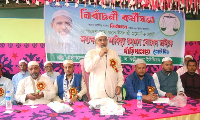 বগুড়া: বগুড়া সদরের পীরগাছা বন্দরে লাহিড়ীপাড়া ইউনিয়ন জামায়াতের নির্বাচনি কর্মী সভা শনিবার (১৫নভেম্বর) বিকেলে ইউনিয়ন আমীর বেলাল উদ্দিনের সভাপতিত্বে অনুষ্ঠিত হয়েছে।