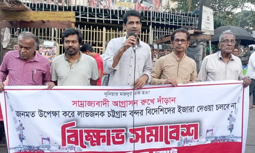 রোববার (১৬ নভেম্বর) বিকেলে নগরীর সিনেমা প্যালেস চত্বরে চট্টগ্রাম জেলা বামগণতান্ত্রিক জোটের এক সমাবেশে নেতারা এসব কথা বলেন। চট্টগ্রাম বন্দরের লালদিয়ার চরে ডেনমার্কের কোম্পানিকে টার্মিনাল নির্মাণের জন্য এবং পানগাঁও টার্মিনালকে সুইজারল্যান্ডের কোম্পানির কাছে ইজারা দেওয়ার প্রক্রিয়ার প্রতিবাদে এ সমাবেশ ডাকা হয়।