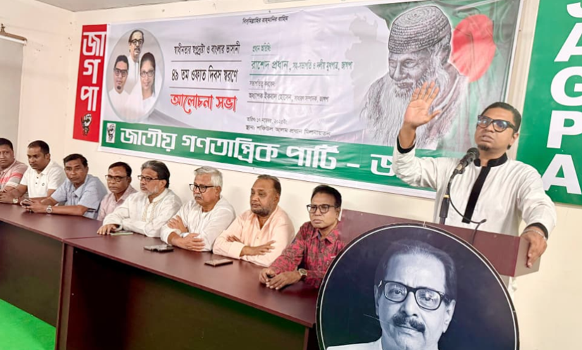 জাগপা সাধারণ সম্পাদক অধ্যাপক ইকবাল হোসেনের সভাপতিত্বে আলোচনা সভায় আরও বক্তব্য দেন জাগপা প্রেসিডিয়াম সদস্য আসাদুর রহমান খান, হাজী মো. হাসমত উল্লাহ, যুগ্ম সাধারণ সম্পাদক রওশন আলম, সাংঠনিক সম্পাদক মো. নাসির উদ্দিন, যুব জাগপা সভাপতি নজরুল ইসলাম বাবলু ও শ্রমিক জাগপা সভাপতি আসাদুজ্জামান বাবুল প্রমুখ।