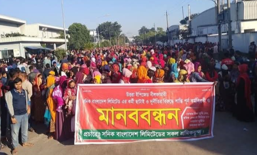 নীলফামারী: নীলফামারীর উত্তরা এক্সপোর্ট প্রসেসিং জোনে (ইপিজেড) শ্রমিক ছাঁটাই বন্ধসহ ৯ দফা দাবিতে বিক্ষোভ করেছে সনিক বাংলাদেশ লিমিটেডের শ্রমিকরা। বিক্ষোভ চলমান থাকা অবস্থাতেই সনিক বাংলাদেশ লিমিটেড কারখানা বন্ধের নোটিশ জারি করেছে।