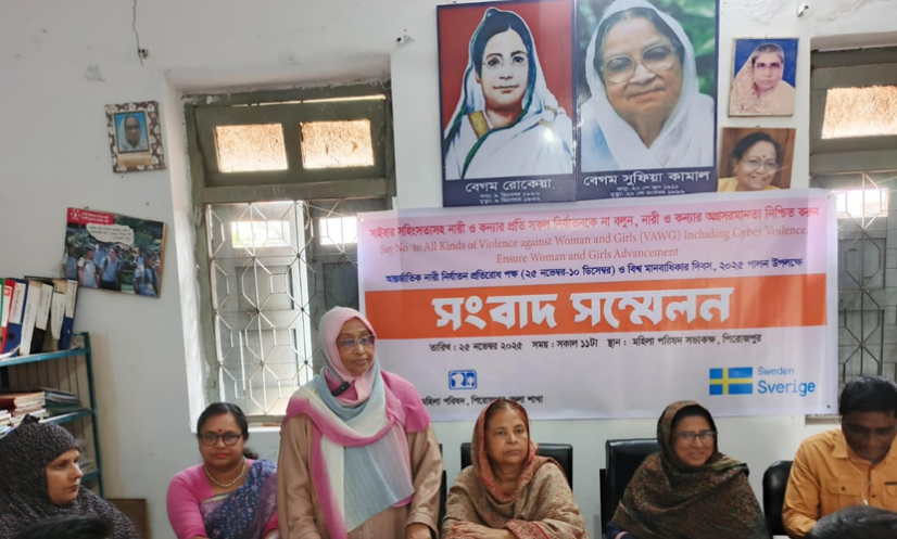 নারী নির্যাতন প্রতিরোধে বাংলাদেশ মহিলা পরিষদের পিরোজপুর জেলা শাখার উদ্যোগে মঙ্গলবার (২৫ নভেম্বর) সংগঠনের জেলা কার্যালয়ে সংবাদ সম্মেলন ও আলোচনা সভায় এ আহ্বান জানানো হয়।