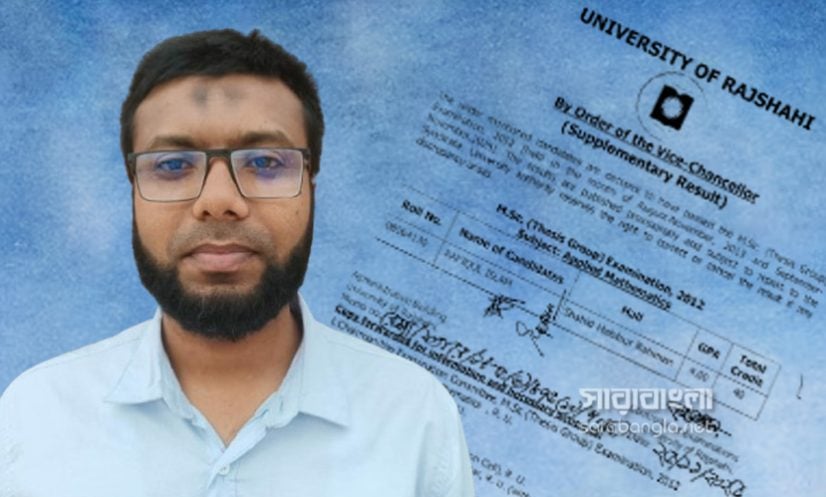 ঢাকা: দীর্ঘ এক দশকের ভোগান্তি ও জটিলতা পেরিয়ে সিজিপিএ ৪ পেয়ে মাস্টার্স পাস করলেন রাজশাহী বিশ্ববিদ্যালয়ের (রাবি) ফলিত গণিত বিভাগের শিক্ষার্থী রফিকুল ইসলাম। বুধবার (২৬ নভেম্বর) বিশ্ববিদ্যালয় প্রশাসন রিভিউ শেষে তার মাস্টার্সের চূড়ান্ত ফলাফল ঘোষণা করেছে।
