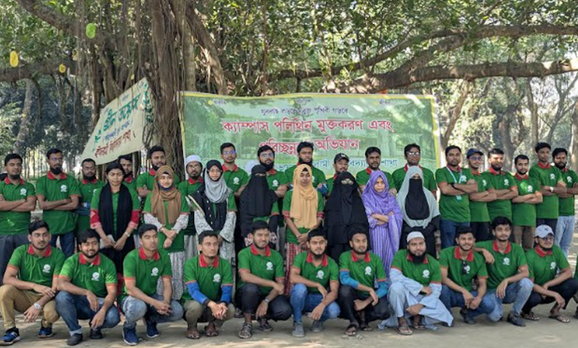 ইবি: ‘যুবরাই লড়বে, সবুজ পৃথিবী গড়বে’-এই প্রতিপাদ্যে ইসলামী বিশ্ববিদ্যালয় (ইবি) ক্যাম্পাসে পলিথিন মুক্তকরণ ও পরিচ্ছন্নতা অভিযান পরিচালনা করেছে পরিবেশবাদী সংগঠন গ্রিন ভয়েস। বৃহস্পতিবার (২৭ নভেম্বর) বেলা ১১টায় ক্যাম্পাসের বটতলা থেকে এ কর্মসূচি শুরু করেন তারা।