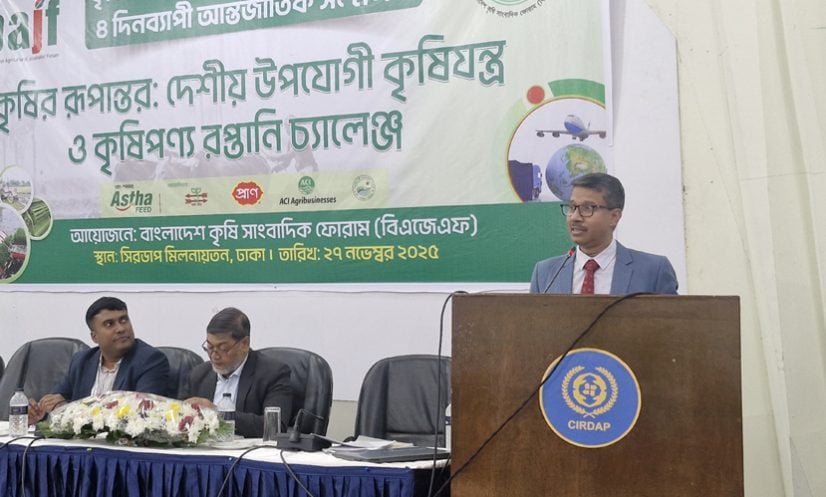 বৃহস্পতিবার (২৭ নভেম্বর) রাজধানীর সিরডাপ মিলনায়তনে বাংলাদেশ কৃষি সাংবাদিক ফোরাম (বিএজেএফ) আয়োজিত ৪ দিনব্যাপি ‘কৃষি ও খাদ্যে রাজনৈতিক অঙ্গীকার’ শীর্ষক আন্তর্জাতিক সম্মেলনের উদ্ভোধনী ‘কৃষির রুপান্তর: দেশীয় উপযোগী কৃষিযন্ত্র ও কৃষিপণ্য রপ্তানি চ্যালেঞ্জ’ সেমিনারে এসব কথা বলেন কৃষি সচিব। বিএজেএফের সাধারণ সম্পাদক আবু খালিদের সঞ্চালনায় এতে সভাপতিত্ব করেন সংগঠনটির সভাপতি সাহানোয়ার সাইদ শাহীন।
