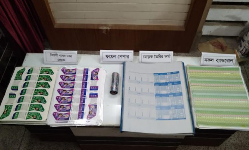অভিযানে ১৫ হাজার ৫০০ পিস নকল ব্যান্ডরোল (স্ট্যাম্প), ৭১৫ পাতা বিদেশি প্রসাধনী পণ্যের নকল স্টিকার, ৪৫০ গ্রাম ফয়েল পেপার ও ৪টি মোড়ক তৈরীর ফর্মাসহ বিভিন্ন সরঞ্জাম জব্দ করা হয়।
