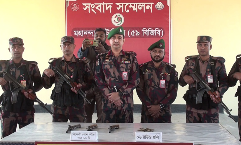 তিনি বলেন, গোপন সংবাদের ভিত্তিতে বৃহস্পতিবার রাত ৯টার দিকে চকপাড়া সীমান্তের শূন্যরেখা থেকে ২৫ গজ অভ্যন্তরে অভিযান চালায় বিজিবির একটি দল। এ সময় তিনটি বিদেশি ওয়ান শ্যুটারগান ও ছয় রাউন্ড গুলি উদ্ধার করা হয়।
