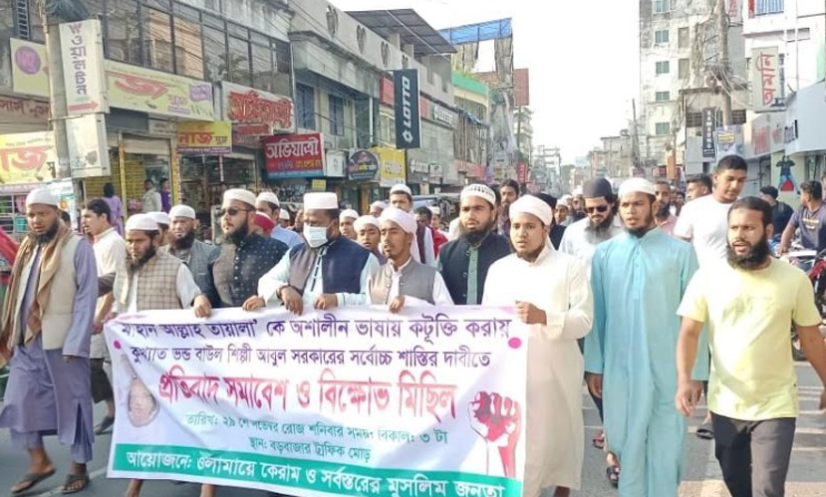 বক্তারা অভিযোগ করেন, বাউল শিল্পী আবুল সরকার মহান আল্লাহ তায়ালাকে নিয়ে অশালীন ও কটূক্তিমূলক বক্তব্য দিয়েছেন, যা কোনোভাবেই সহনীয় নয়।