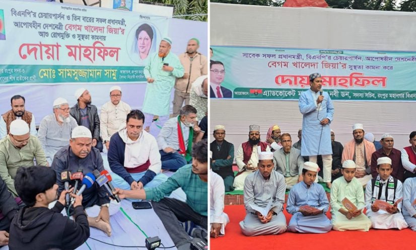 এর আগে শুক্রবার বাদ জুম্মা রংপুর সদর ও সিটি করপোরেশন এলাকার শতাধিক মসজিদে দোয়া-মাহফিলের আয়োজন করা হয়েছে। এসব কর্মসূচিতে নামাজের পর বিশেষ মোনাজাত করা হয়েছে বেগম খালেদা জিয়ার দীর্ঘায়ু, আশু আরোগ্য এবং দেশের কল্যাণের জন্য। স্থানীয় মসজিদের ইমামরা দোয়া পরিচালনা করেন, যাতে বিএনপির স্থানীয় কমিটির সদস্যরা অংশ নিয়ে সকলে একসঙ্গে দোয়া করেন।