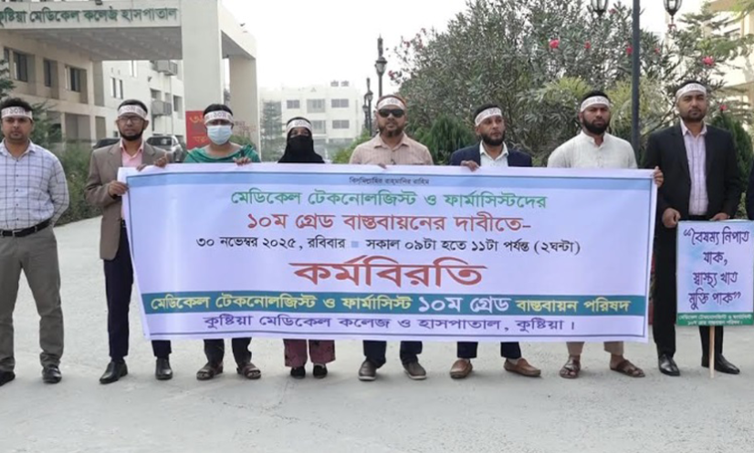 কুষ্টিয়া: ৮ দফা দাবি আদায়ে কুষ্টিয়া জেনারেল হাসপাতাল ও মেডিকেল কলেজে প্রতীকী শাটডাউন কর্মসূচী পালন করেছে নার্স ও মিডওয়াইফাররা।