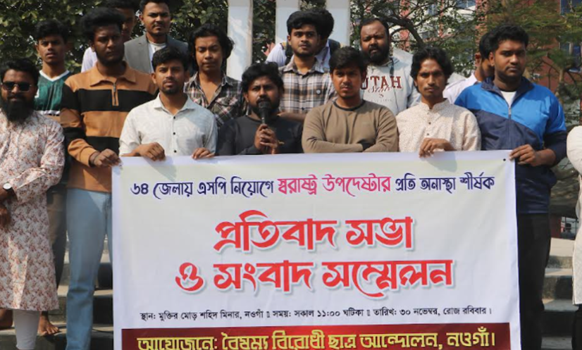 নওগাঁ: ৬৪ জেলায় নতুন পুলিশ সুপার (এসপি) নিয়োগে স্বরাষ্ট্র উপদেষ্টার প্রতি অনাস্থা জানিয়ে নওগাঁয় প্রতিবাদ সভা এবং সংবাদ সম্মেলন করেছে শিক্ষার্থীরা।
