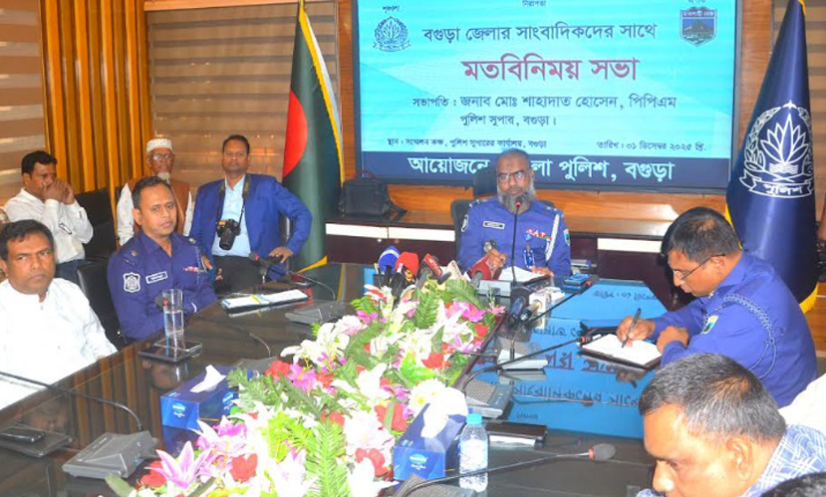 বগুড়া: বগুড়ার নতুন পুলিশ সুপার মো. শাহাদত হোসেনের সঙ্গে সাংবাদিকদের মতবিনিময় সভা অনুষ্ঠিত হয়েছে। সোমবার (১ ডিসেম্বর) বেলা ১১টায় জেলা পুলিশ সুপার কার্যালয়ের হলরুমে এ সভার আয়োজন করা হয়।