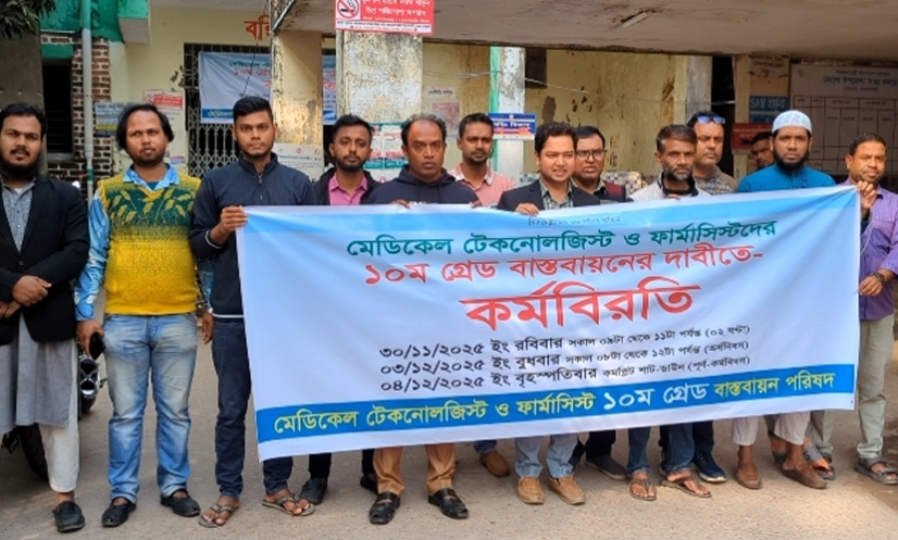 বাগেরহাট: ১০ম গ্রেড বাস্তবায়নের দাবিতে বাগেরহাটের মোংলায় কর্মবিরতি পালন করেছেন মেডিকেল টেকনোলজিস্ট ও ফার্মাসিস্টরা। বৃহস্পতিবার (৪ ডিসেম্বর) থেকে লাগাতার কমপ্লিট শাটডাউন কর্মসূচি পালনের ঘোষণা দিয়েছেন আন্দোলনকারীরা।