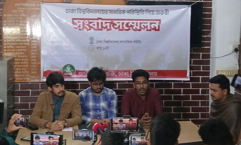 এতে বিশ্ববিদ্যালয়ের সিদ্ধান্তের ওপর শিক্ষার্থীদের প্রশ্ন তৈরি হয়েছে বলে মন্তব্য করেছেন জাতীয় ছাত্রশক্তির ঢাকা বিশ্ববিদ্যালয়ের সভাপতি তাহমীদ আল মোদ্দাসসীর চৌধুরী। বুধবার (৩ ডিসেম্বর) রাত ১০ টায় ঢাকা বিশ্ববিদ্যালয়ের সাংবাদিক সমিতিতে জরুরি এক সংবাদ সম্মেলনে এই মন্তব্য করেন তিনি।