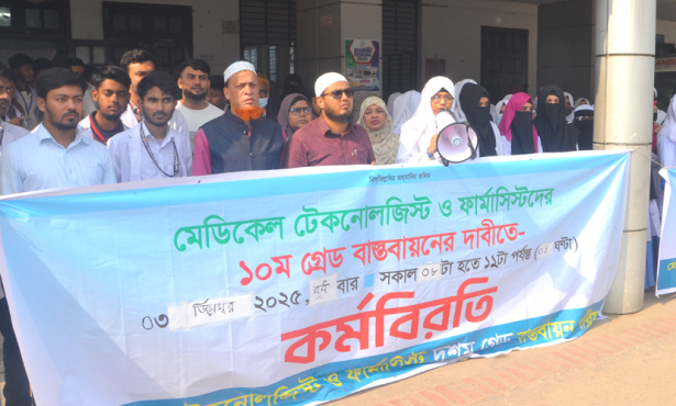 পাবনা: দশম গ্রেড বাস্তবায়নের দাবিতে পাবনায় কর্মবিরতি পালন করেছে মেডিকেল টেকনোলোজিস্ট ও ফার্মাসিস্টরা। এতে ভোগান্তিতে পড়েছেন হাসপাতালে আসা সেবা নিতে আসা রোগীরা।