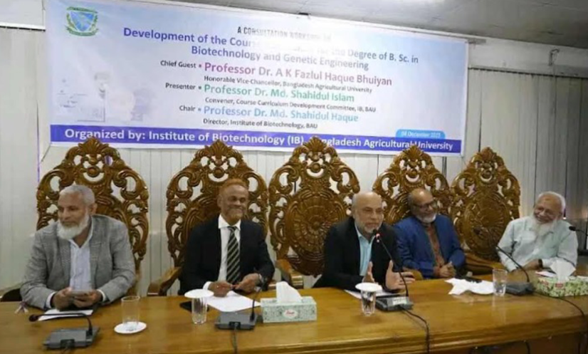 বাকৃবি: বাংলাদেশ কৃষি বিশ্ববিদ্যালয়ের নবপ্রতিষ্ঠিত ‘ইন্সটিটিউট অব বায়োটেকনোলজি’-এর উদ্যোগে ‘বায়োটেকনোলজি এবং জেনেটিক ইঞ্জিনিয়ারিং-এ বি.এস.সি ডিগ্রির জন্য কোর্স কারিকুলাম প্রণয়ন’-শীর্ষক পরামর্শমূলক কর্মশালা অনুষ্ঠিত হয়েছে।